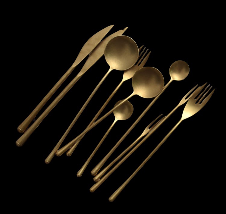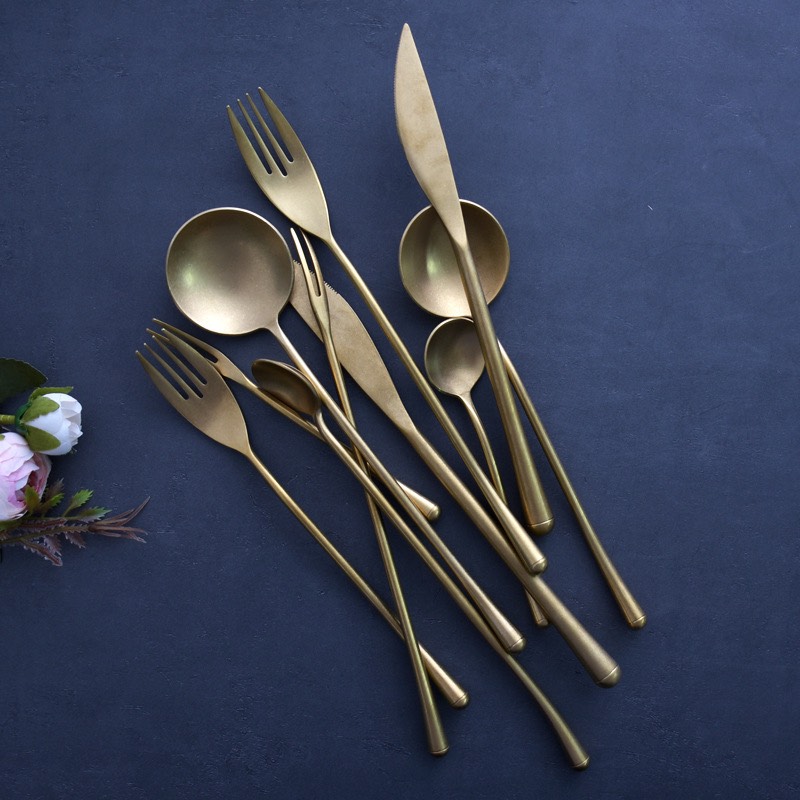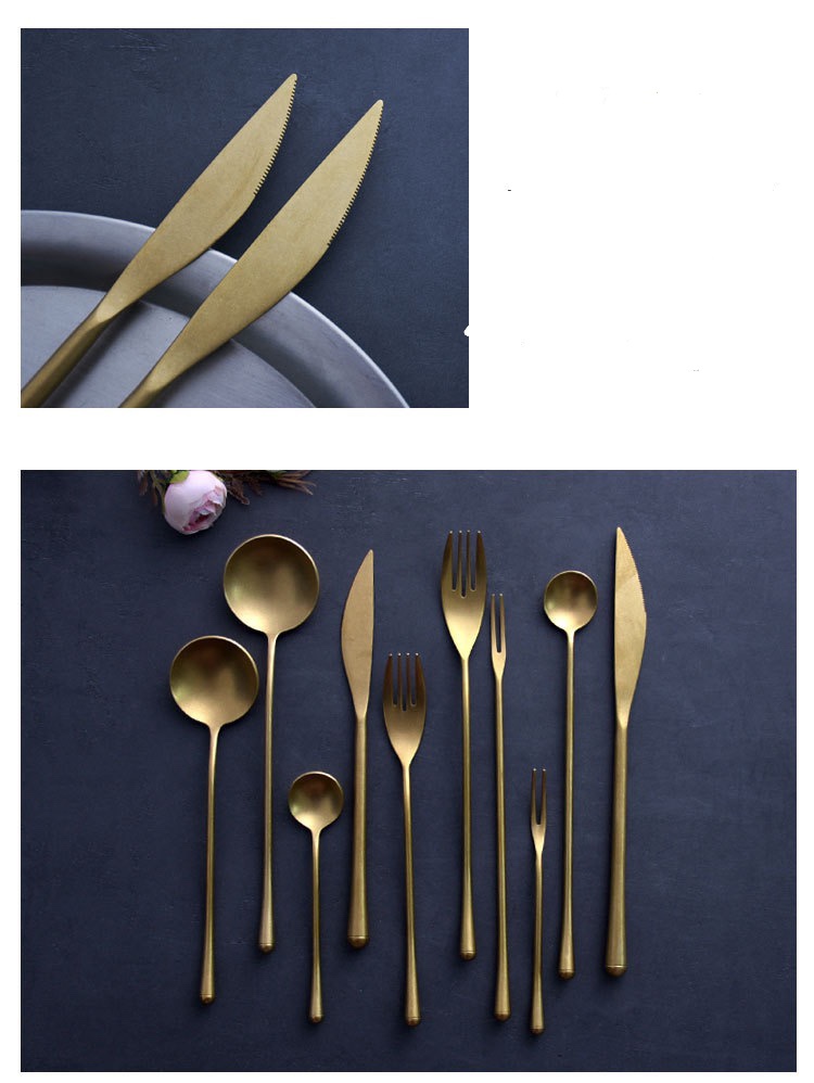 + Sản phẩm được làm từ chất liệu inox mờ cao cấp #304 mạ vàng với thiết kế đặt biệt đầu cán tròn hình giọt nước.