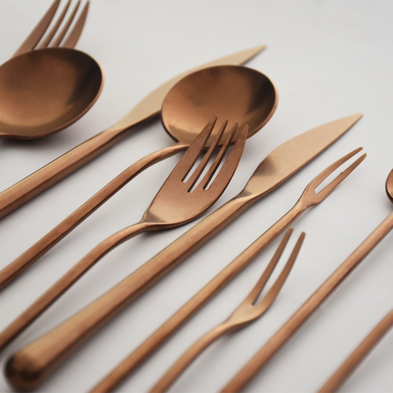 + Sản phẩm được làm từ chất liệu inox mờ cao cấp #304 mạ vàng với thiết kế đặt biệt đầu cán tròn hình giọt nước.