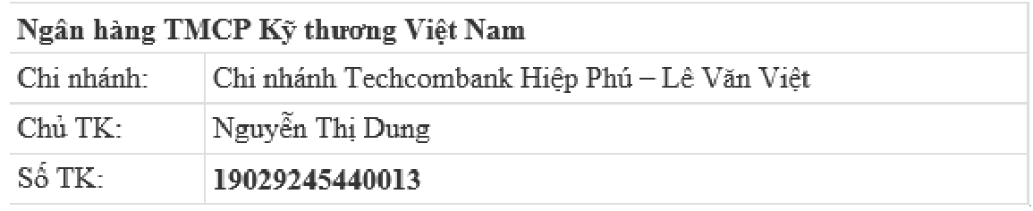 + Quý khách lưu ý gọi đúng số Hotline trước khi chuyển khoản để đảm bảo an toàn thanh toán và xác nhận tiền thanh toán đã được chuyển khoản thành công.