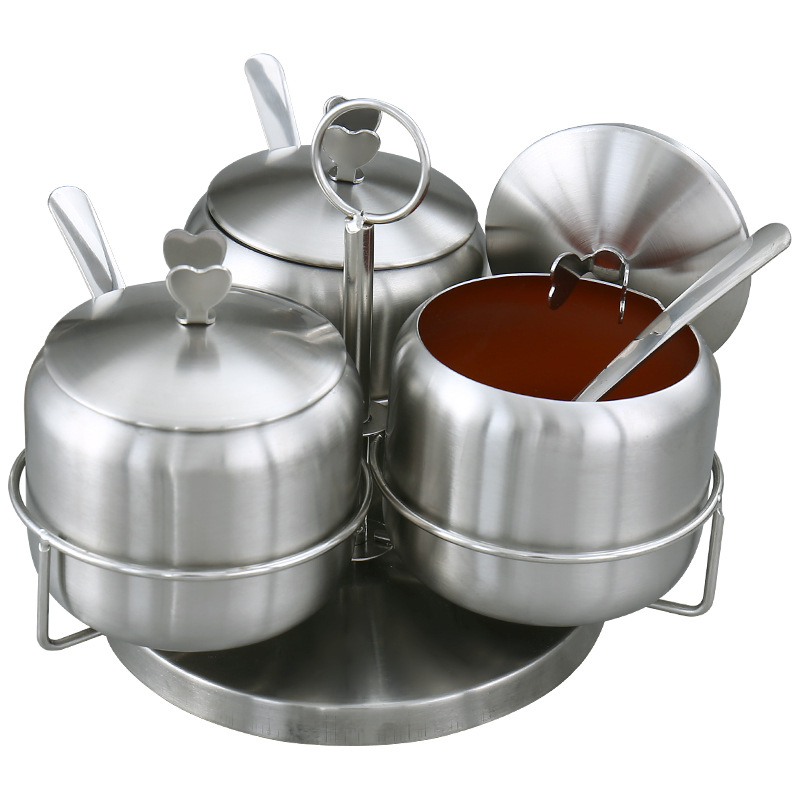 + Sản phẩm hũ 3 gia vị inox có kệ và được tặng kèm thìa .