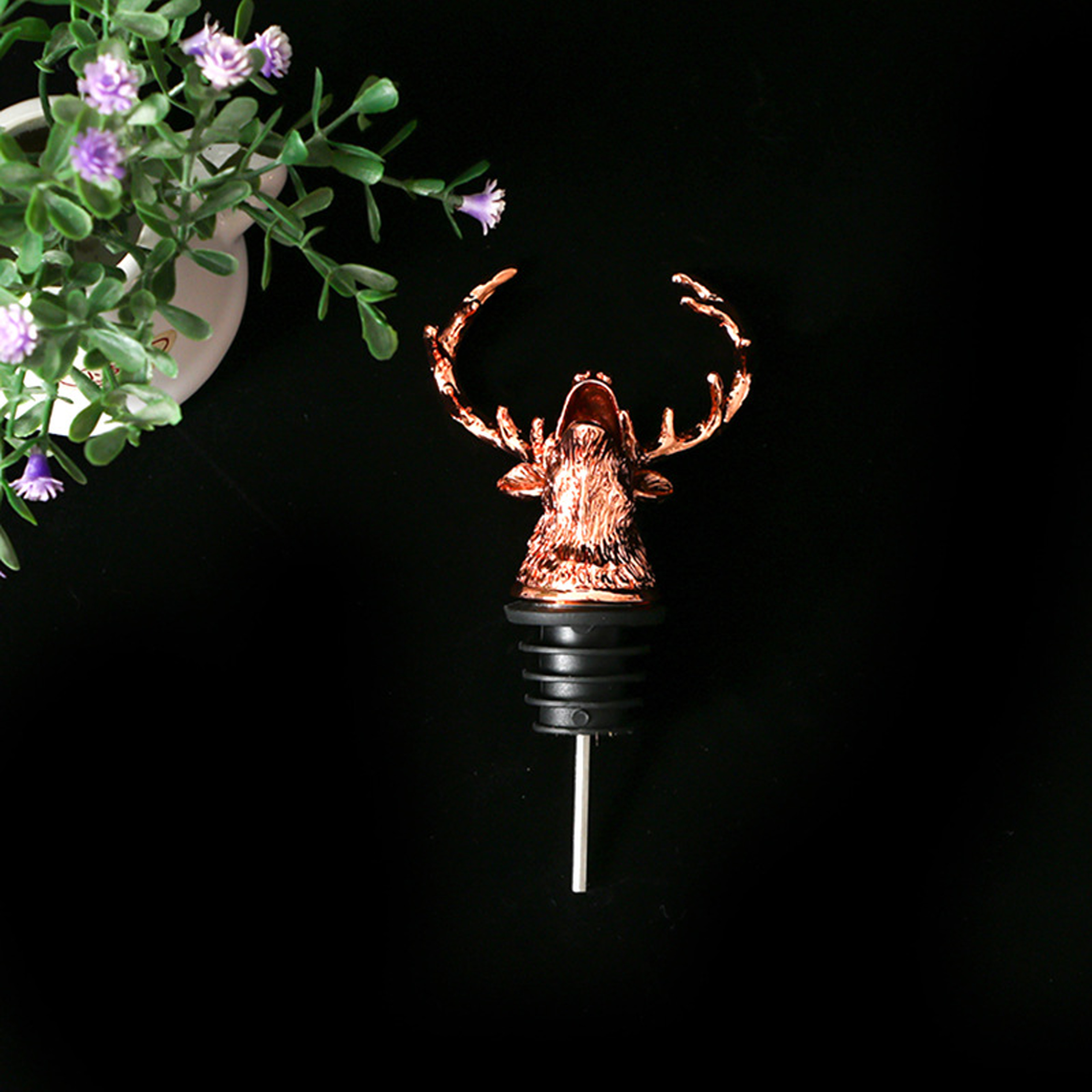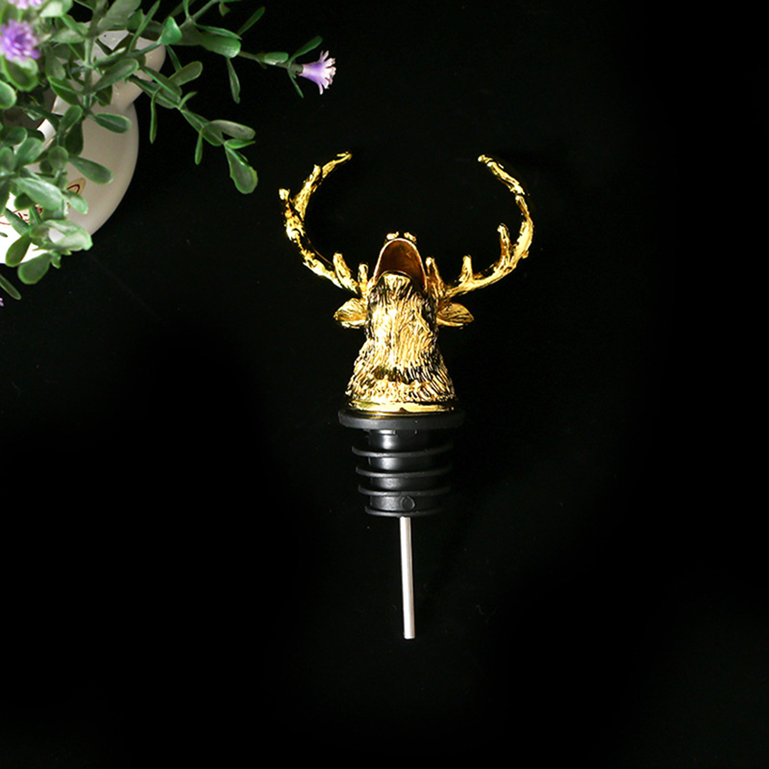 +Đầu vòi rót rượu hình con hươu được làm từ chất liệu hợp kim chống gỉ sét, rất bền bỉ và an toàn khi sử dụng. Kiểu dáng đầu con hươu có thiết kế tinh xảo đến từng chi tiết, trang trí trên đầu các chai rượu shampanh, rượu vang.... thật độc đáo và nổi bật.
