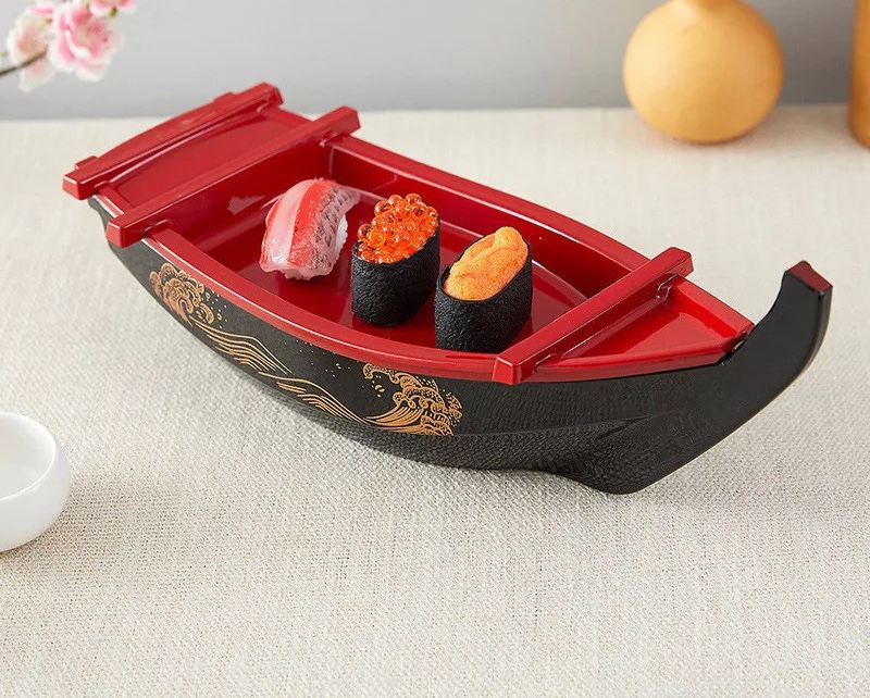 + Sản phẩm thuyền nhựa đựng Sushi được dùng để trang trí Sushi Temaki trong phong cách trang trí ẩm thực Nhật Bản.