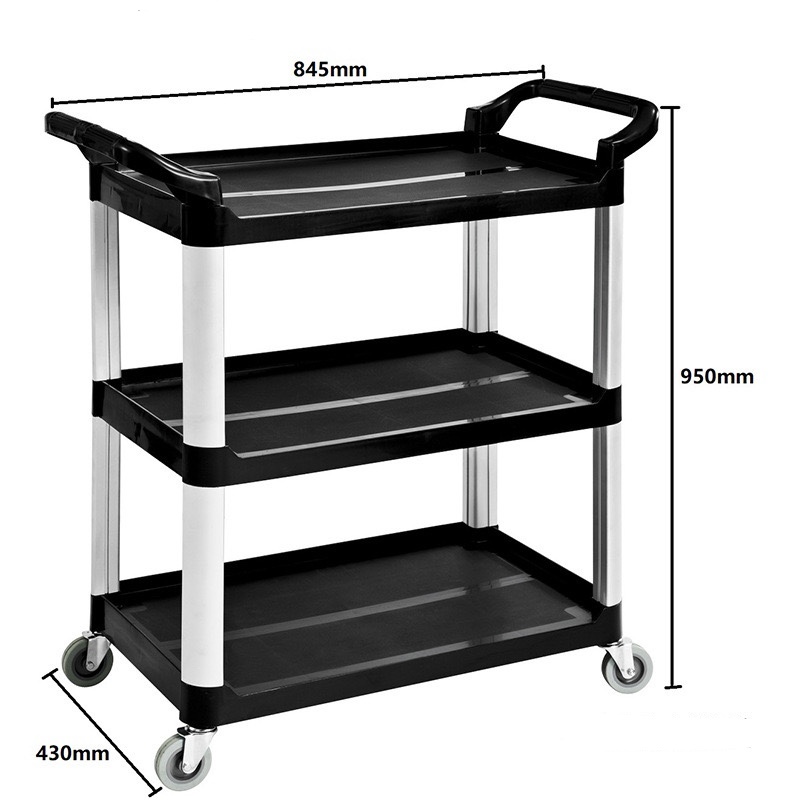 + Thiết kế 3 tầng tiện dụng dùng để đẩy thức ăn, đồ uống, lên món khi phục vụ bàn tiệc. Khi lắp đặt thêm 2 xô nhựa 2 bên, chiếc xe có thể sử dụng để thu gom đồ ăn thừa, bát đĩa bẩn, dọn bàn tiệc nhanh chóng.